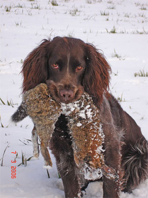 Perle zeichnet sich aus durch ihren sehr starken Stöberwillen, große Wasserfreude und ihr kinderliebes Wesen. Ihre Wildschärfe konnte sie ebenfalls nachweisen.